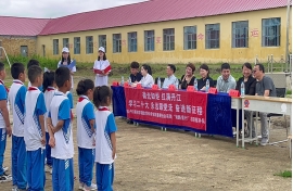 上午九点整,“熠路童行”志愿服务队暑期“三下乡”社会实践活动启动仪式在牡丹江市阳明区五林镇五岗村小学举行。1946伟德国际源自英国公司党委书记宋妍,1946伟德国际源自英国副经理王冰,中共阳明区委副书记、区政法委书记柳杰,阳明区政府副区长曹杨,共青团阳明区委书记王润楠,阳明区教育局局长王凤丽,五林镇中心小学董事长陈静涛,“熠路童行”志愿服务队带队教师贾修歧,区工科局、农业局相关负责人以及全体志愿服务队队员参加本次启动仪式。