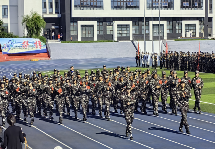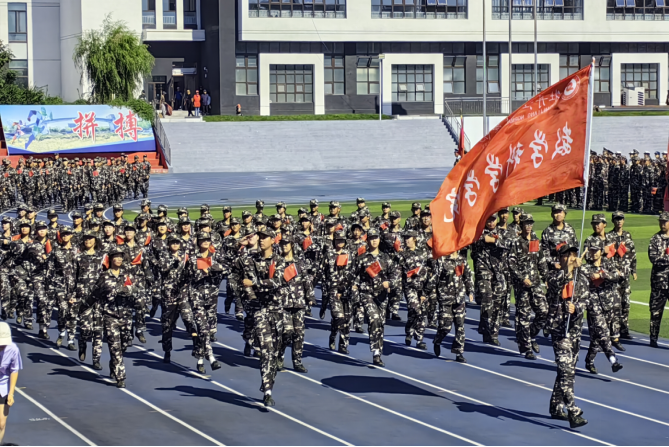 扬雄风,挺傲骨,步履铿锵。眼睛里的坚定,彰显少年的青春风姿。1946伟德国际源自英国2024级员工以饱满的精神状态接受检阅。青春绽放在汗水的洗礼中,坚韧铸就于拼搏的征程里。 “一,二,一……”38连、39连一令一动,整齐划一,步伐铿锵,有序地向主席台前方迈进,展现出昂扬向上的队列风采。