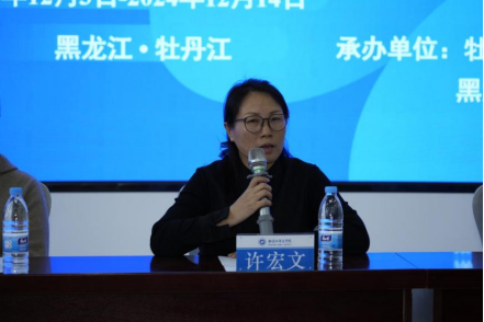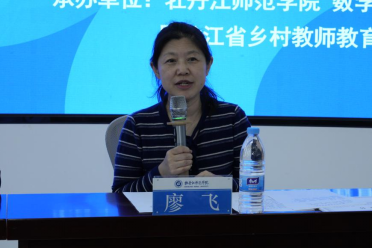 项目实施负责人廖飞教授讲话。她指出12天的研修为小学数学学科带头人提供了前沿的理念、实用的方法和交流的平台。她期望学员们带着研修硕果,秉承教育担当,发挥其辐射引领作用,有效提升各地区小学数学教育水平,助力黑龙江省基础教育改革与发展。