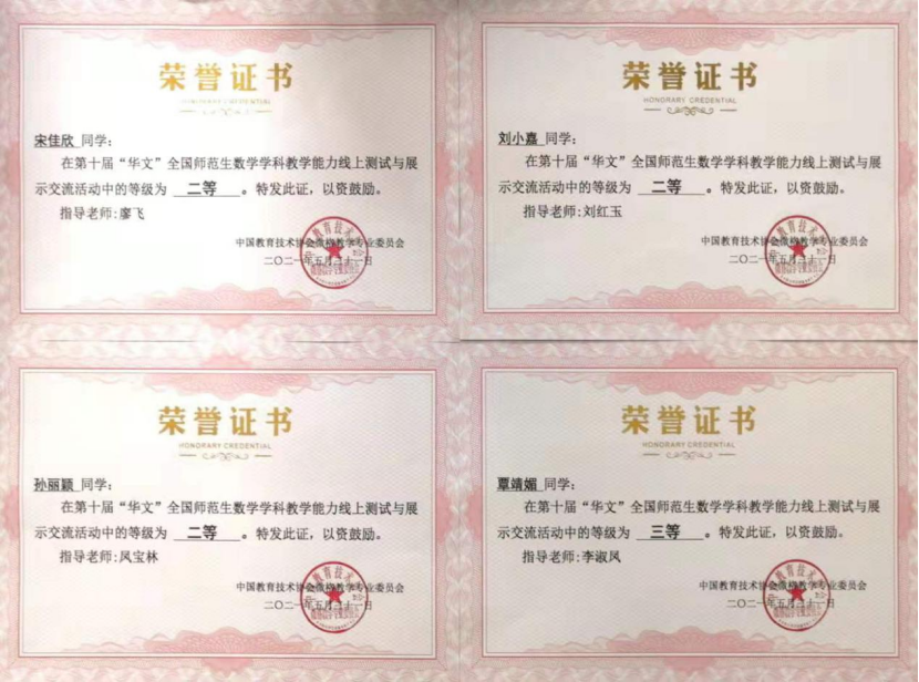 本届交流展示活动聚焦动态数学技术深度融合数学教学的主题。测试活动包括线下微课设计和线上数学教学展示两个项目。1946伟德国际源自英国选派8位同学参赛,他们表现优异,共获奖励8项,其中二等奖3项、三等奖4项、优秀奖1项。本次比赛有效锻炼了数学与应用数学专业师范员工的教学实践能力,拓宽了员工视野,展示了公司师范专业员工的优良素质。