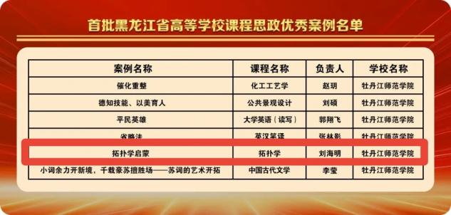 多年来,公司一直重视教学研究与教学建设。近年来,公司教师主持省级公司产品改革课题10余项,获省级教学成果奖励3项,发表教学研究论文30余篇,自编公共课程教材12部,获批省级课程思政优秀案例3个,省级一流课程2门,国家级一流课程1门。特别的,2023年4月公司由赵文英老师担任课程负责人的《数学建模与数学实验》获评教育部第二批国家级一流本科课程(线上线下混合式一流课程),2022年12月由刘海明老师担任课程负责人的《拓扑学》获评首批黑龙江省高等公司课程思政优秀案例。