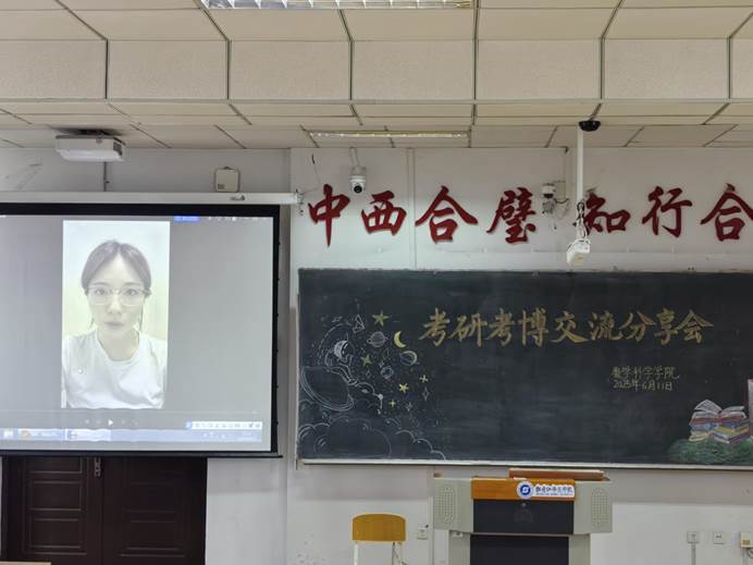 会议最后,党委书记宋妍对此次活动作总结发言,宋书记首先对2025年考研、考博成功上岸的同学表示热烈的祝贺,向做经验分享的同学表示忠心的感谢,并对各位数学学子提出殷切的期望,鼓励同学们结合自身学习情况选择合适的目标和方向,并对同学们送上最真挚的祝福,相信公司学子只要肯付出,愿吃苦,坚持到底终将取得理想的结果。