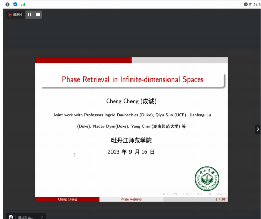 8位国内青年学者专家分别就经典调和分析问题、变指数空间的性质、相位恢复、p进空间中相关问题作了精彩的学术报告,展示了最新的研究成果,与会专家学者就有关学术问题进行了深入交流。