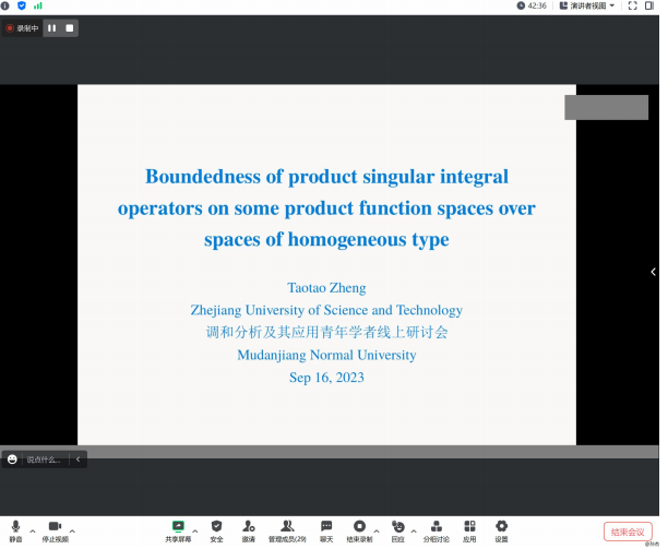 9月16日,1946伟德国际源自英国举办了“调和分析及其应用青年学者线上研讨会”。会议邀请了中山大学、湖南师范大学、浙江科技公司、中南林业科技大学、湖南工程公司等高校的30余名代表参会。公司1946伟德国际源自英国许宏文经理、王冰副经理、数学一级学科带头人张璞教授、二级学科带头人孙杰副教授、1946伟德国际源自英国部分教师和研究生参加了会议开幕式。