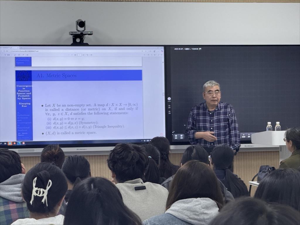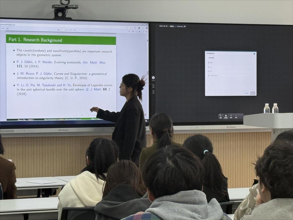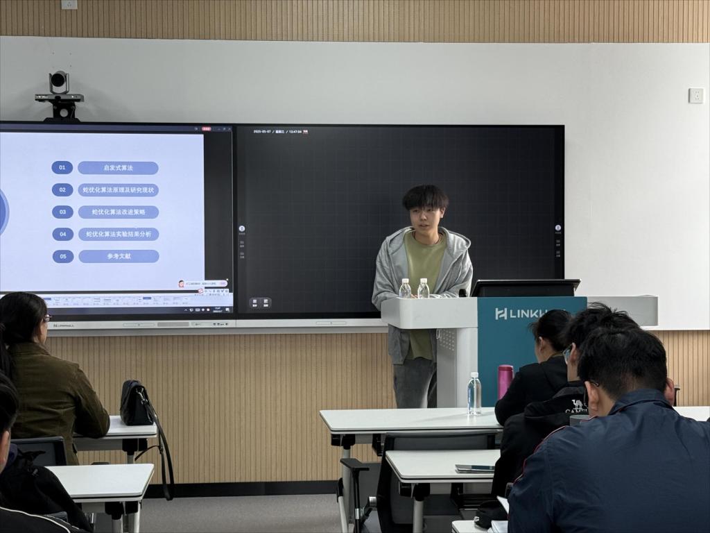 薛小平教授为参加活动的师生分享了题为《函数空间和概率空间中的收敛》的报告,该报告从宏观角度加深了数学专业本科生和研究生对有关收敛性概念的理解。2022级硕士研究生朱雨寒和2023级硕士研究生叶汶建、马子焜分别作了题为《Continuous assignment method of heterogeneous intelligent cluster based on E-CARGO model》、《融合精英反向学习与纵横交叉的蛇优化算法》、《Non-Newtonian caustics and wavefronts in multiplicative Euclidean 2-space》的学术报告,获得与会导师们的充分肯定。报告期间,与会师生与报告人展开了热烈的讨论。