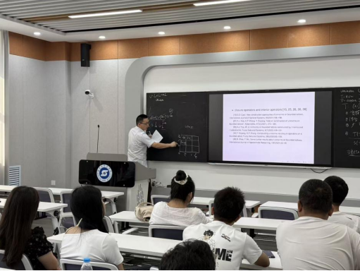 修教授首先阐明了研究工作的背景,然后分享了三种构造一致模的方法,其中着重介绍了通过模构造模以及通过t-余模和闭包算子构造模的方法。另外,修教授还跟同学们分享了作学术研究的一些心得体会,并鼓励大家积极从事数学研究。