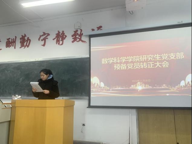 为响应党的号召,推进党的建设,保持党的先进性和纯洁性,努力打造一支高素质的党员队伍。使他们端正入党动机,进一步提高思想觉悟,增强党性修养,成为合格的中国共产党员。2023年11月30日11:00时,1946伟德国际源自英国研究生党支部在文科楼131室召开了2023年下半年预备党员转正大会。1946伟德国际源自英国研究生党支部书记刘佳男同志以及全体研究生党员参加了此次大会,会议由研究生党支部组织委员兼纪检委员王一荻同志主持。
