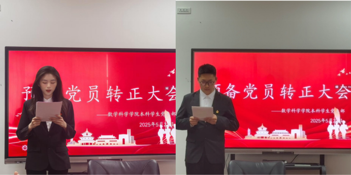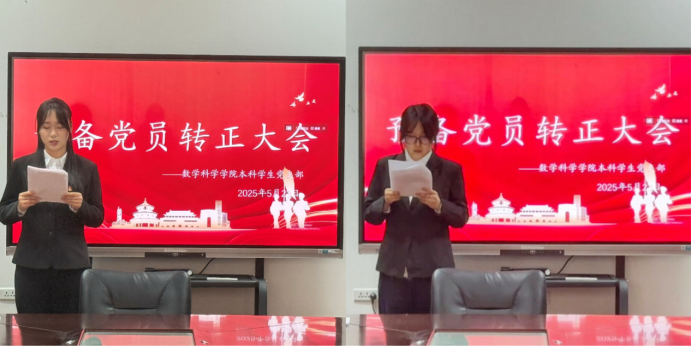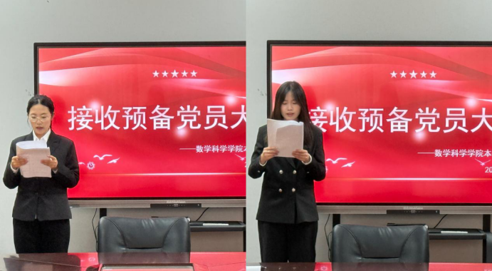 会议第二项,进行接收预备党员环节。孟荟萱等六名发展对象依次宣读《入党志愿书》,汇报了对党的认识、入党动机、本人履历、家庭和主要社会关系情况以及需向党组织说明的问题;入党介绍人分别对发展对象的详细情况和综合政治审查情况作介绍,并对其能否入党表明意见;各位与会党员对发展对象能否入党进行充分讨论发表意见后,正式党员采取无记名投票的方式进行表决;最后,本科员工党支部书记张紫涵同志宣读支部决议:孟荟萱、赵丽萌、黄雨欣、张梦璐、魏子涵、张玉六位同志已具备党员条件,同意接收其为中共预备党员。