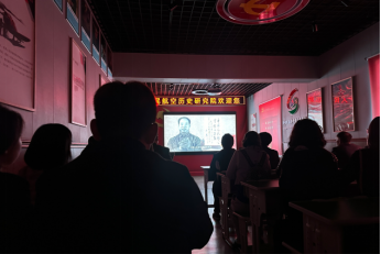 活动第二项,全体参与人员来到老航校历史研究院观看老航校历史影片,重温老航校的发展脉络、先辈们的英勇奋斗历程以及航空事业的艰辛崛起之路,切实感受到了空军战士的英勇无畏,更加深刻理解了先辈们在艰苦条件下为航空事业拼搏奋斗的精神。