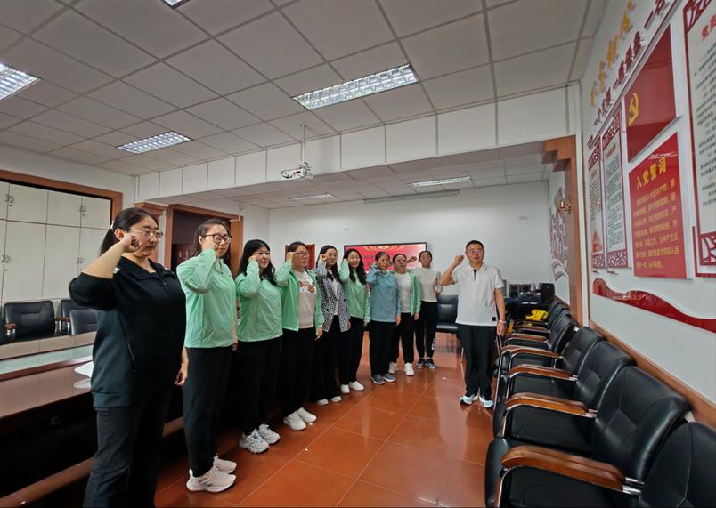 会议第三项,正处级组织员王海志带领新发展党员进行入党宣誓以及支部全体党员重温入党誓词。面对鲜红党旗,新发展预备党员以铿锵誓言许下对党忠诚的庄严承诺,为党组织注入蓬勃生机;老党员们重温入党誓词,在字字千钧的誓言中回溯初心、坚定信念。薪火相传间,两代党员以共同的信仰凝聚奋进力量,未来将继续立足教育岗位,以实际行动践行使命担当,为公司高质量发展与党的教育事业谱写新篇章。