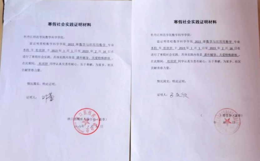 实践单位:牡丹江市林口县南山社区、林口县残疾人联合会