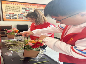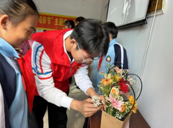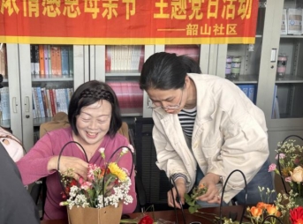 首先,“爱的N次方”服务队的志愿者向少先队员们介绍母亲节的由来、习俗、意义,与其分享母爱典故,并引导员工展开“分享身边的母爱”、“我们如何反馈这份爱”的交流。随后,少先队员们向志愿者学习手势舞《感恩的心》并为现场的家长表演,以此表达其对母亲的感恩之情。最后,志愿者们同社区党员、少先队代表们开展母亲节主题插花活动,大家修剪枝叶、搭配花色,尽情享受着亲自创作的乐趣和插花艺术带来的愉悦。志愿者们将满载祝福和感恩的花束送给独居的老党员们,以此传递对他们的爱意及敬佩之心。